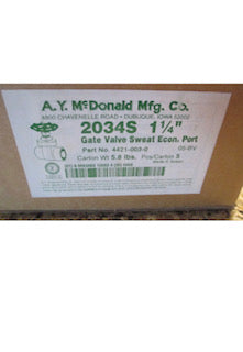 AY McDonald 1 1/4" Standard Port Gate Valve, Solder Connections, Brass, 2034S (Lot of 5)